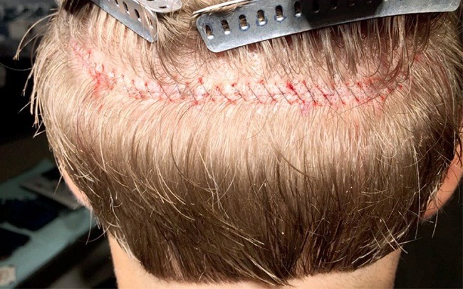 Surgery to remove a 20 - 25cm long and 1 to 2.5 cm tall strip of skin from the donor area, cutting together skin, muscles, nerves and blood vessels.